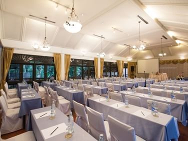 Meet out of the box and be at one with nature. What could be better for hosting a government seminar for instance? Our flexible and comprehensively supported meetings and events facilities and services ensure that every event is an occasion. Explore the possibilities of our personalized meetings packages. Choose from among our medium-capacity, subtly styled venues with full audio-visual and service support from our in-house specialists. Whether projectors, mics, flip charts, lighting, props and catering, we have exactly what you’re looking for.